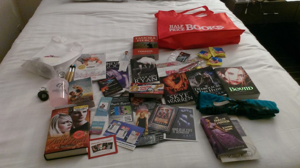 As you can see from the pictures above, those were the ONLY things I had gotten from the first TWO days of RT, not to mention the giant load of free books I received from Thursday’s and Friday’s events. Literally, it was sensory overload, and I questioned if this was real life.