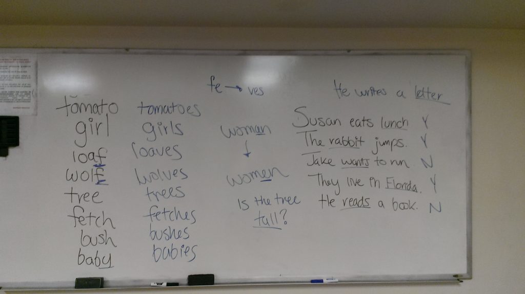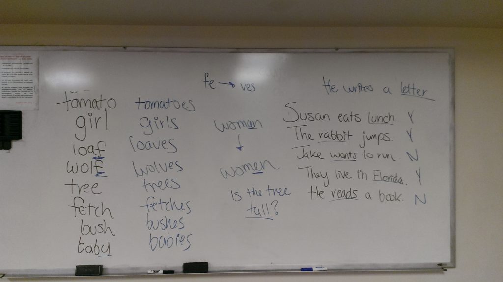 I started off Tuesday’s class by reiterating the classroom rules to my students. It was basically a mini speech about speaking up/participating more in class, use more English (to practice speaking skills), and that they needed to ask questions or tell me they don’t understand something because I won’t automatically know. I told them I wasn’t tying to be mean or strict, I just wanted to get them to understand the more that they do in class, the more their English would improve. The mini speech proved to be effective and a lot more people (besides the usual students) started to speak up in class. This week I kicked off the unit on American culture by talking about greetings/introductions.I put them with different people they haven’t worked with in the class during conversation practice and I barely heard any Spanish! After the failure of trying to teach them possessive nouns, I went back to the grammar basics and started to teach them nouns (as well as the difference between plural and singular nouns).