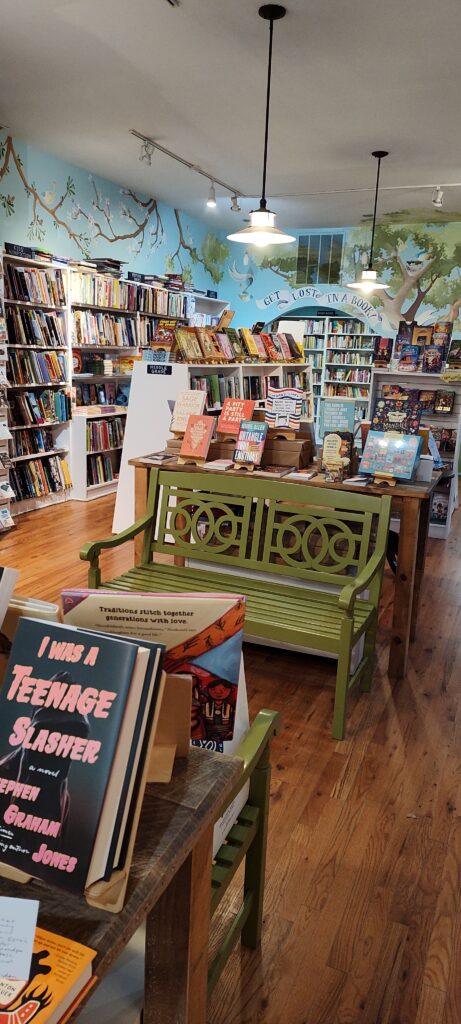 Also located in Roscoe Village is, The Last Chapter Bookstore which is a Latina owned indie bookstore. It is Chicago’s only romance bookstore! The space offers a diverse selection of books and merchandise along with titles by independent authors as well. The store is small and cute, but they have a lot of books and items on their shelves. The store has cute photo booths and hosts a variety of community and author events in the store.