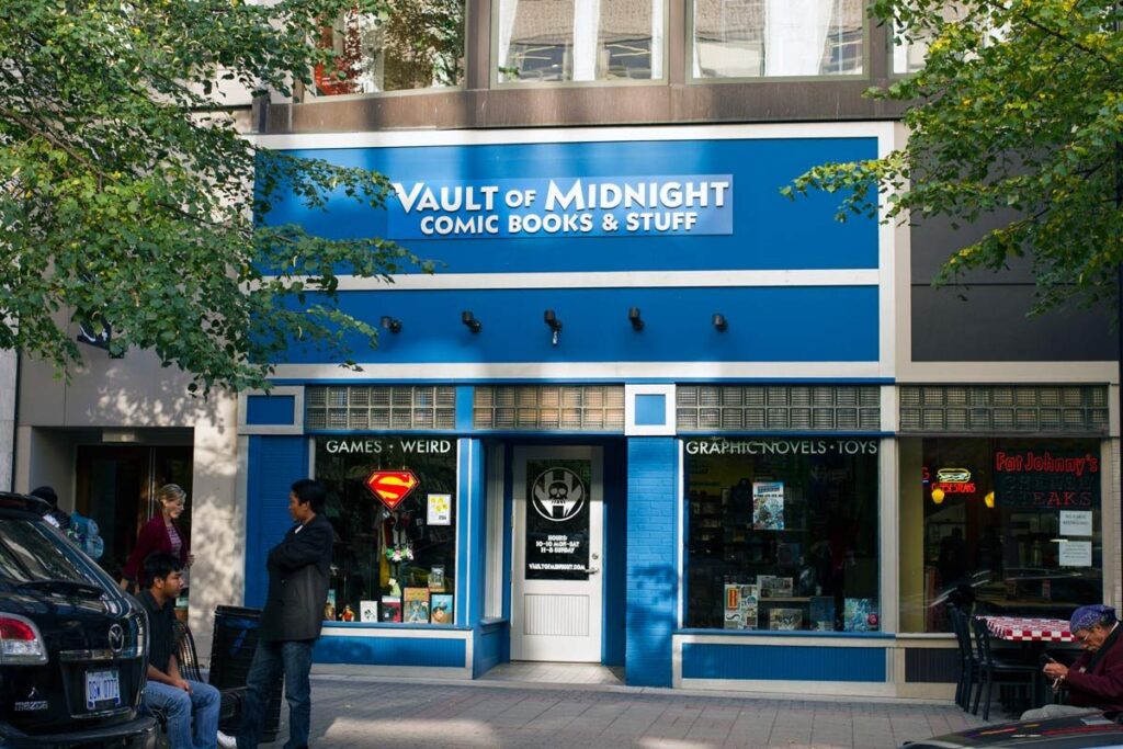 Vault of Midnight is an amazing comic shop with a great overall ambience. The design of the shop alone had me in awe when I first visited. They have a wide array of comics and graphic novels from kids to adults. They also carry a lot of new titles and anything you can’t get your hands on can be special ordered for you. The staff is fun to chat with and they offer some great suggestions. They have three stores in total located in Downtown Detroit, Grand Rapids, and Ann Arbor.