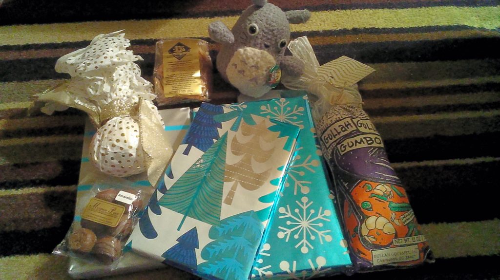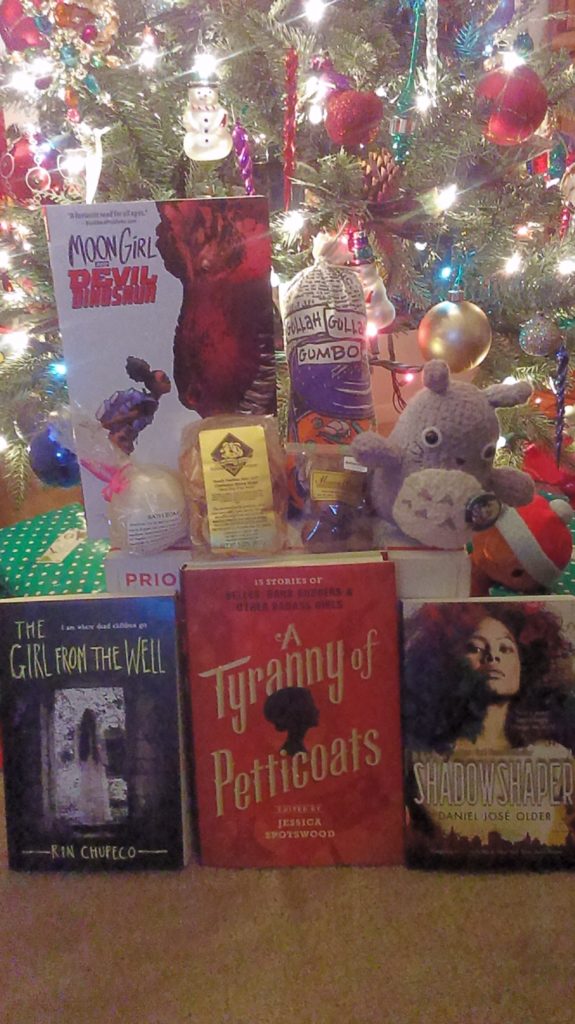 I cannot wait to read these books since they have been on my TBR for quite a while. I absolutely loved the handmade Totoro (which is adorable) and the Howl’s Moving Castle pin (attached to Totoro). The chocolate, wafers, and gumbo look delicious! I am especially excited to try the gumbo since it’s one of my favorite foods. The bath bomb smells wonderful too. π